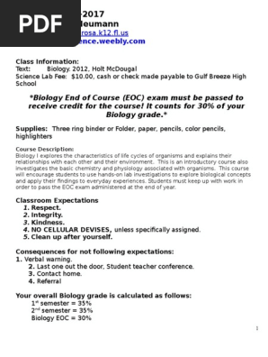 Please email cheyenna novotny with questions, concerns or errors on the biology eoc review webpages. Level 2 for surfside building collapse Prepare for the next generation sunshine state standards in biology by practicing with these tests. A student's performance on the assessment is not required to constitute 30 percent of the student's final course grade. Florida biology eoc success strategies study guide: